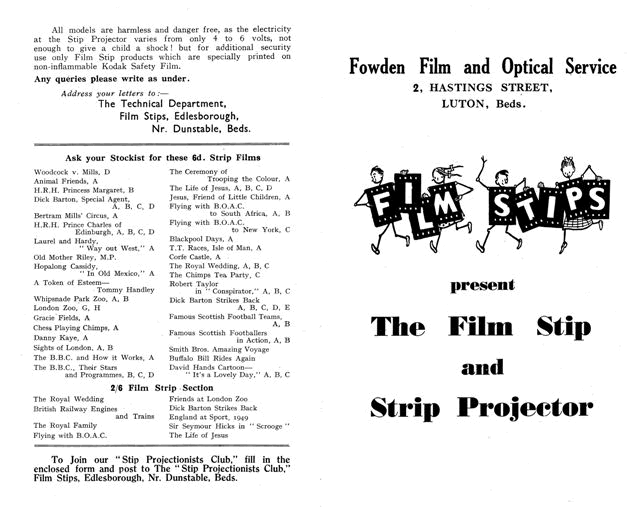 Film Stips, Edlesborough Nr. Dunstable, Beds