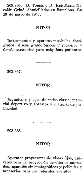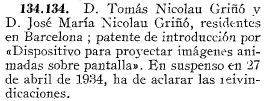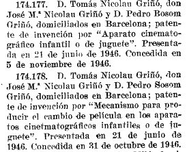 Au cours de mes recherches débutantes, j'avais vu apparaître son nom uniquement en Italie comme importateur du projecteur Nic. J'avais même appris qu'il était susceptible d'avoir fabriqué quelques projecteurs de type Dux. Mais la suite de mes recherches démontra que son rôle dans la diffusion des projecteurs à images alternées était plus important. ![]() Ses inventions En effet le rôle de Mario Sassoli dans l'histoire des projecteurs à images alternées était essentiel : Mario Sassoli est l'inventeur des petits projecteurs en bakélite, les successeurs du gros projecteur Nic ! Il déposera sa première demande de brevet en Allemagne le 21 mars et 3 avril 1935, qu'il obtiendra le 16 septembre 1937 avec effet au 4 avril 1935. Cet appareil sera construit par la fabrique Markes & Co à Lüdenscheid (Allemagne), sous le nom de Dux Kino MM. D'autres brevets pour le même appareil seront ensuite obtenus dans divers pays : - demande le 24 avril 1935 en France : brevet délivré le 12 août 1935, le Ciné Egda MM sera fabriqué par les établissements Egda de Marseille), - demande au Royaume-Uni : brevet obtenu avec effet au 29 avril 1935, un prototype en métal moulé sera fabriqué en 1945 par Martin Lucas Ltd, mais en 1947 c'est Ken Harding qui fabriquera un modèle en bakélite sur la base d'un autre brevet, - demande en Espagne déposée le 29 octobre 1935 et obtenue le 16 janvier 1936, - demande aux Etats-Unis : brevet obtenu le 14 juillet 1936 avec effet au 2 juillet 1935. Je suppose que le même brevet sera obtenu en Italie et en Suisse. Quelques temps plus tard, le projecteur sera modifié en remplaçant la commutation électrique des ampoules par un volet obturateur, retrouvant ainsi finalement la technique initiale du Nic espagnol ! Ce ne sera pas Sassoli mais l'entreprise allemande Markes qui déposera la demande de brevet en Allemagne le 21 avril 1950, en France le 3 octobre 1950, en Suisse le 26 octobre 1950, au Royaume-Uni le 1er novembre 1950, ... Toujours cette même année 1935, Mario Sassoli, alors qu'il dirigeait son entreprise Ditta Sassoli située 22 via Monte Napoleone à Milan, avait pris contact avec Aurelio Gallepini, un jeune dessinateur qui deviendra célèbre sous le surnom de Galep. C'est lui qui dessinera les premières bandes pour les projecteurs Dux. En 1935 Mario Sassoli avait également eu l'occasion de travailler avec Miguel Nebel, le futur inventeur du Minicine anglais, sur différents projets d'appareil photographique ou de projecteur à écran intégré. Il le retrouvera en 1937 sur des travaux concernant des jouets tels que des animaux mécaniques, une course de petits chevaux, un folioscope (flip-book) publicitaire,... En 1939 il verse toujours une redevance comerciale aux frères Nicolau, démontrant ainsi qu'il n'avait pas voler illégalement leurs brevets. Il ne déposera plus aucune demande de brevet après 1939. En 1940-1941 il est toujours à Milan où il propose des produits cosmétiques et capillaires. Ses inspirations Dans le parcours de mes recherches, j'avais pu constater que les échanges entre inventeurs avaient eu lieu et que les inspirations étaient parfois croisées. L'invention de l'image alternée, les personnages des films, les détails techniques étaient repris, modifiés, copiés... Un exemple intéressant nous est donné par Mario Sassoli avec la forme du logotype de la marque Nic iltalienne :